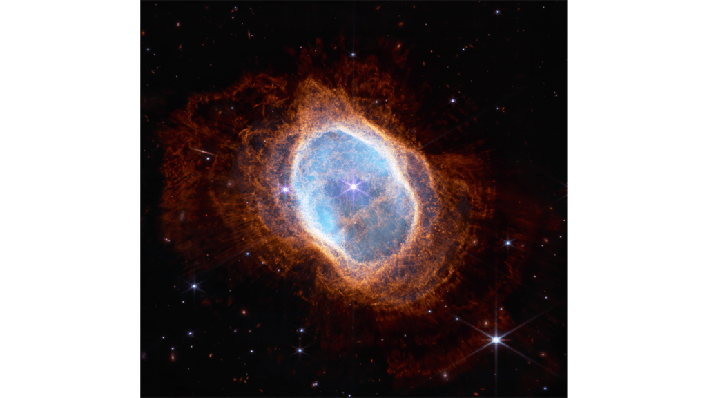 Pictured: the Southern Ring Nebula as pictured by JWST. Link: https://webbtelescope.org/news/first-images/gallery/zoomable-image-southern-ring-nebula